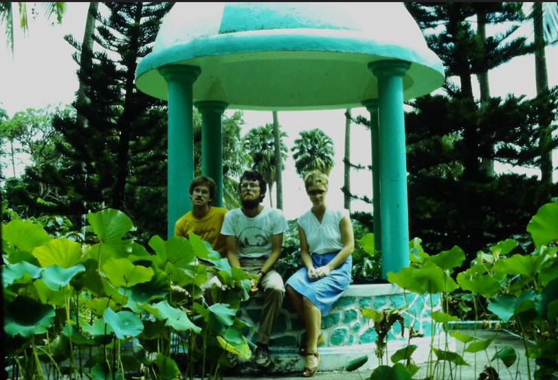 Pete and Alan (our visitors from Dominica) and Debbie at the Botanic Gardens